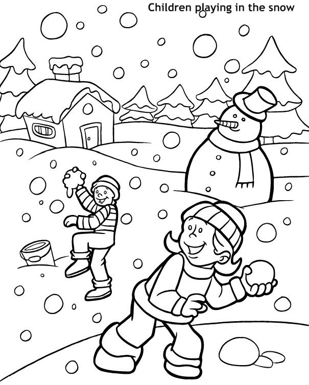 Posted on 5 בנובמבר 2014 / 0 / Fotkids דף צביעה של ילדים שמשחקים בחורף בשלג. מאחוריהם בובת שלג,עצים, ובית מושלג. ויורד עליהם שלג. הדפס דפי צביעה ילדים, שלג לצביעה דמויות מצויירות לצביעה, חורף לצביעה